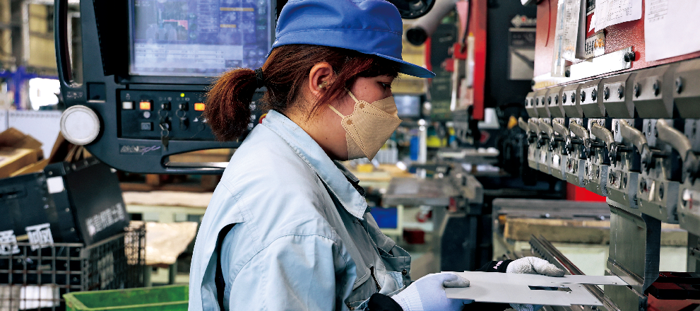 精密板金製品の設計から完成品に至る一貫生産体制で生産を行っています。